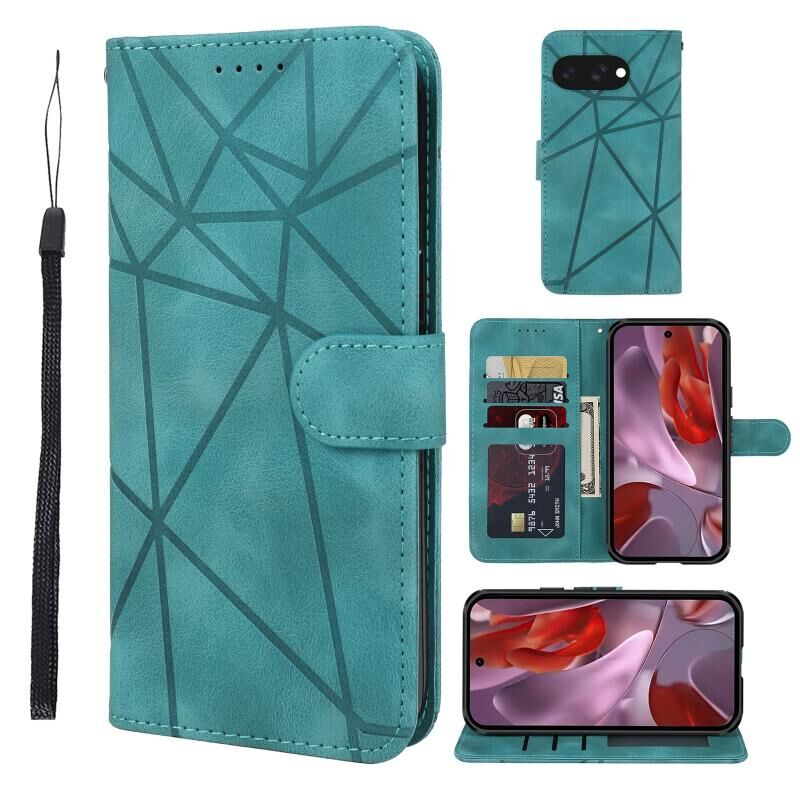 Για το Google Pixel 9a Skin Feel Γεωμετρικές γραμμές δερμάτινη θήκη τηλεφώνου (πράσινο)