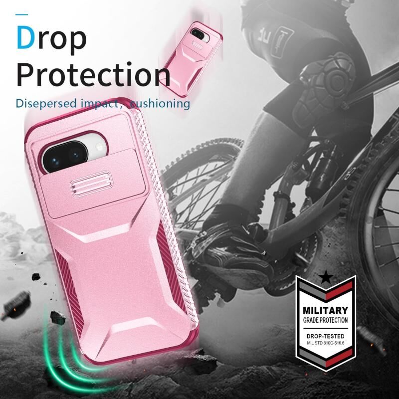 Θήκη τηλεφώνου Google Pixel 9a με συρόμενο προστατευτικό κάμερας (Pink + Rose Red)