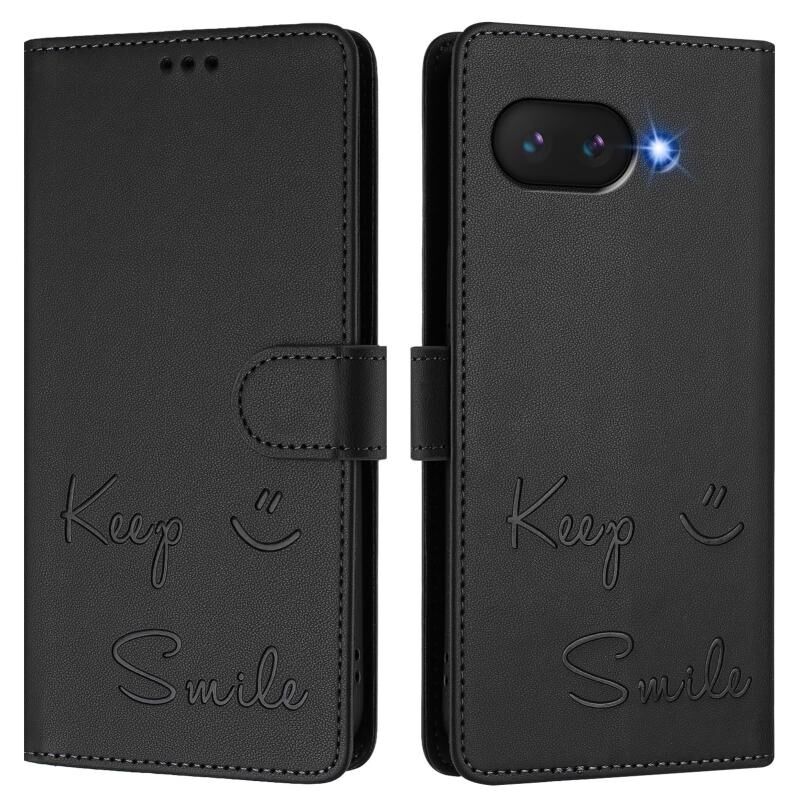 Για Google Pixel 9a Χαμόγελο ανάγλυφο RFID δερμάτινη θήκη τηλεφώνου (Μαύρο)