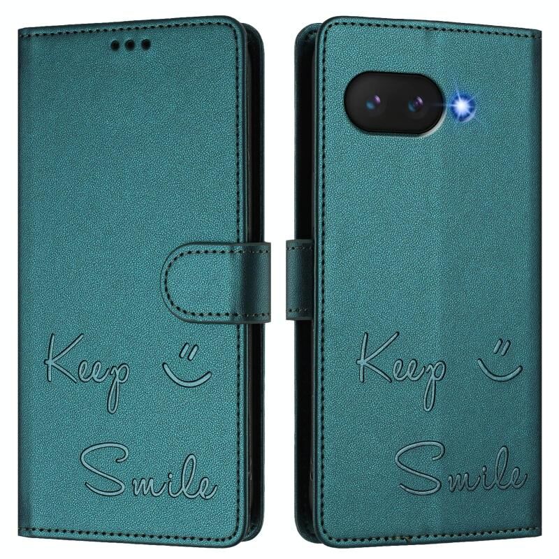 Για Google Pixel 9a Χαμόγελο ανάγλυφο RFID δερμάτινη θήκη τηλεφώνου (Πράσινο παγώνι)