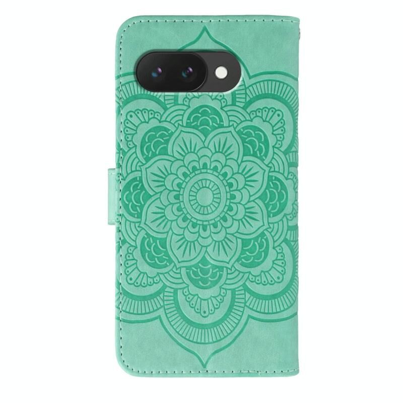 For Google Pixel 9a Sun Mandala Embossing Pattern Phone Leather Case(Green)