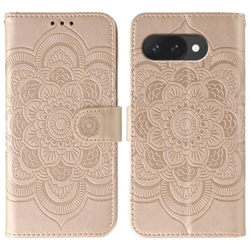 For Google Pixel 9a Sun Mandala Embossing Pattern Phone Leather Case(Rose Gold)