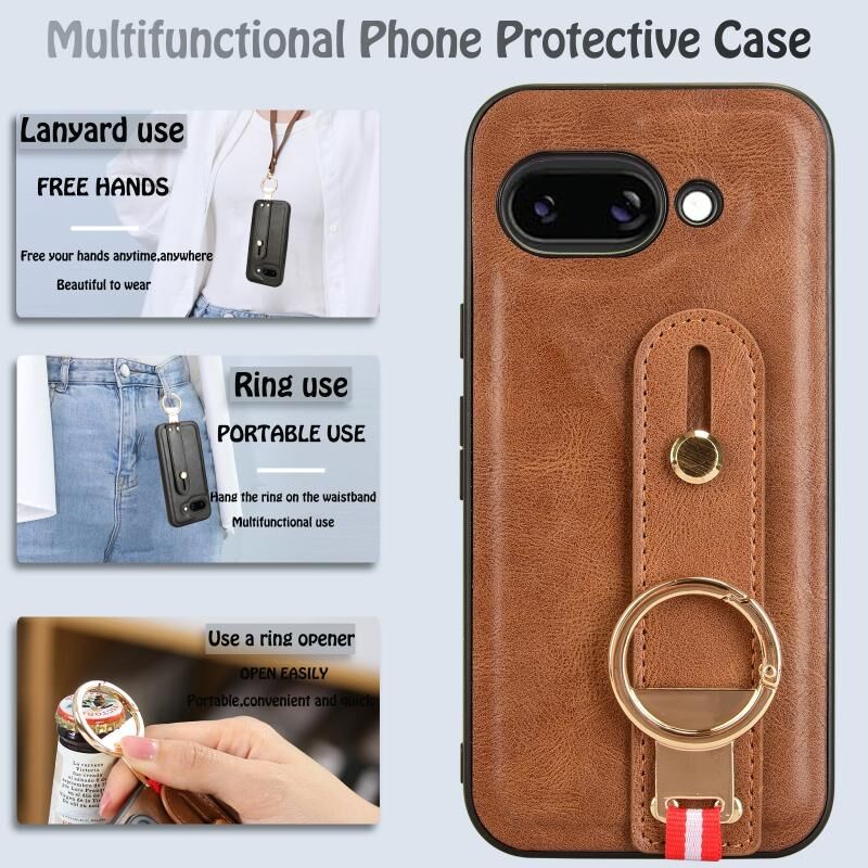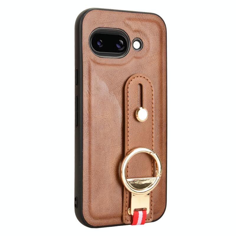 Για Google Pixel 9a Wristband δέρμα πίσω θήκη τηλεφώνου (καφέ)