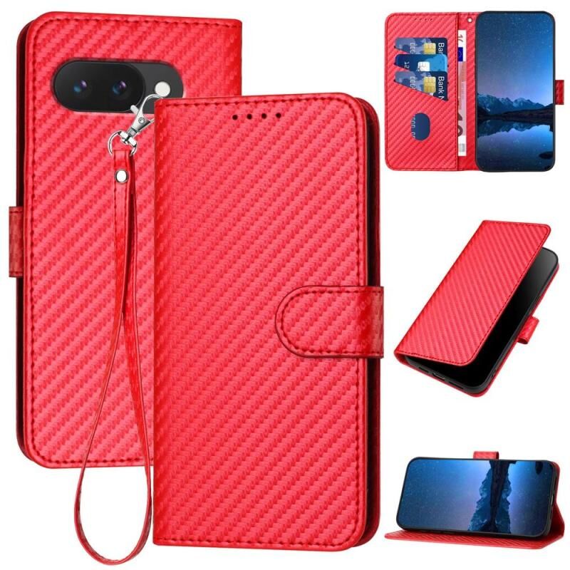 For Google Pixel 9a YX0070 Carbon Fiber Buckle Leather Phone Case with Lanyard(Red)