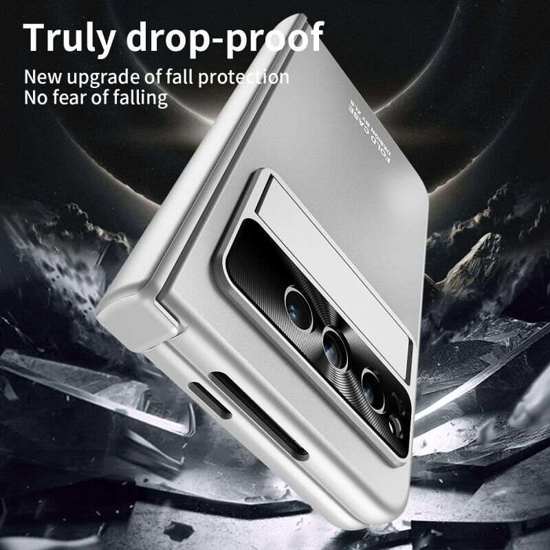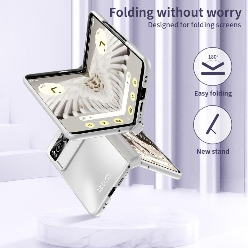 Για το Google Pixel Fold Ολοκληρωμένη θήκη τηλεφώνου με υποδοχή για στυλό και μεντεσέ (ασημί)