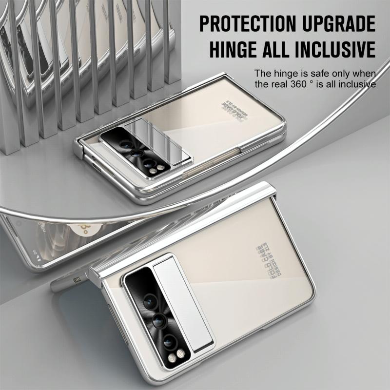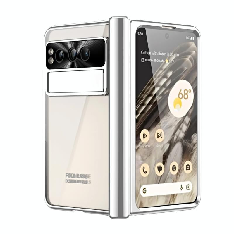 For Google Pixel Fold Integrated Electroplating Folding Phone Case with Hinge(Silver)