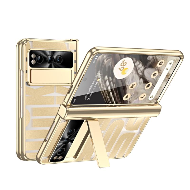 For Google Pixel Fold Integrated Electroplating Folding Phone Case with Pen Slot & Hinge(Gold)