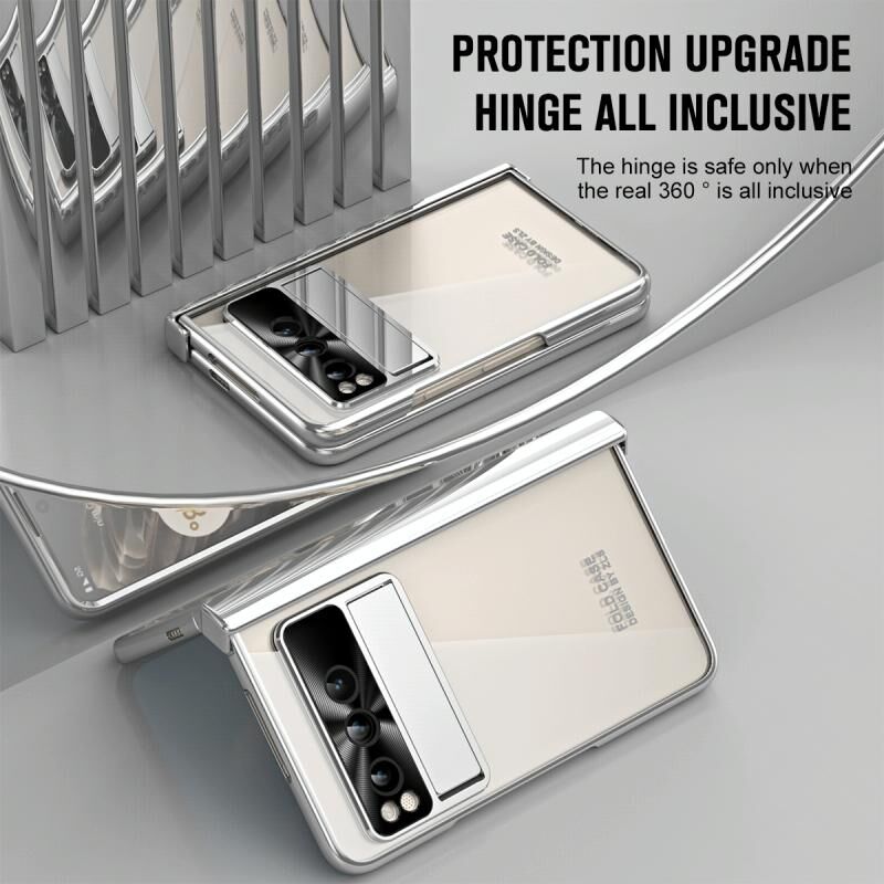 For Google Pixel Fold Integrated Electroplating Folding Phone Case with Pen Slot(Silver)