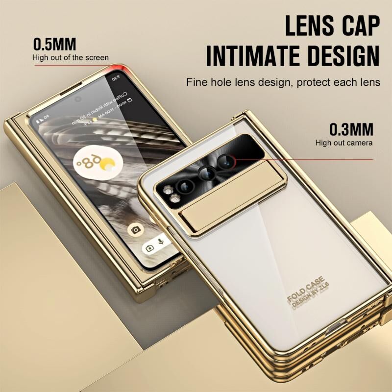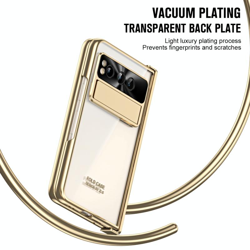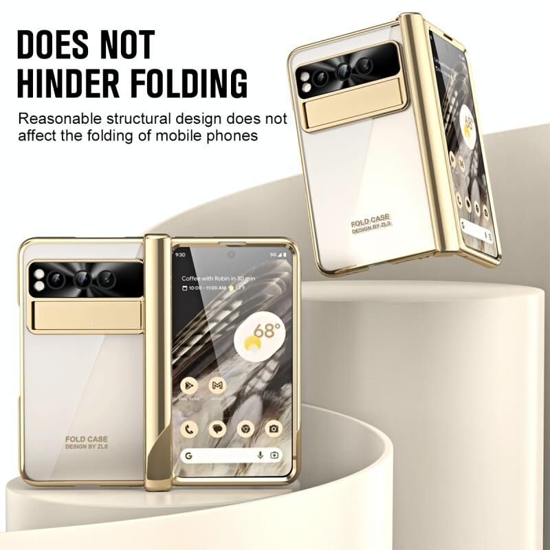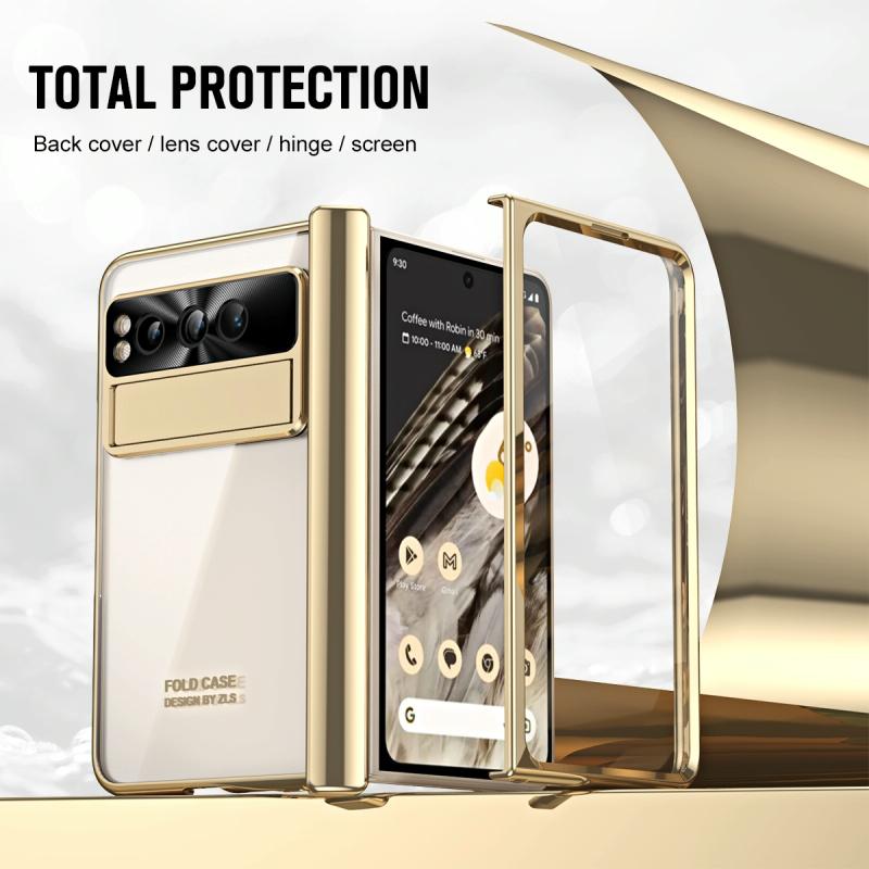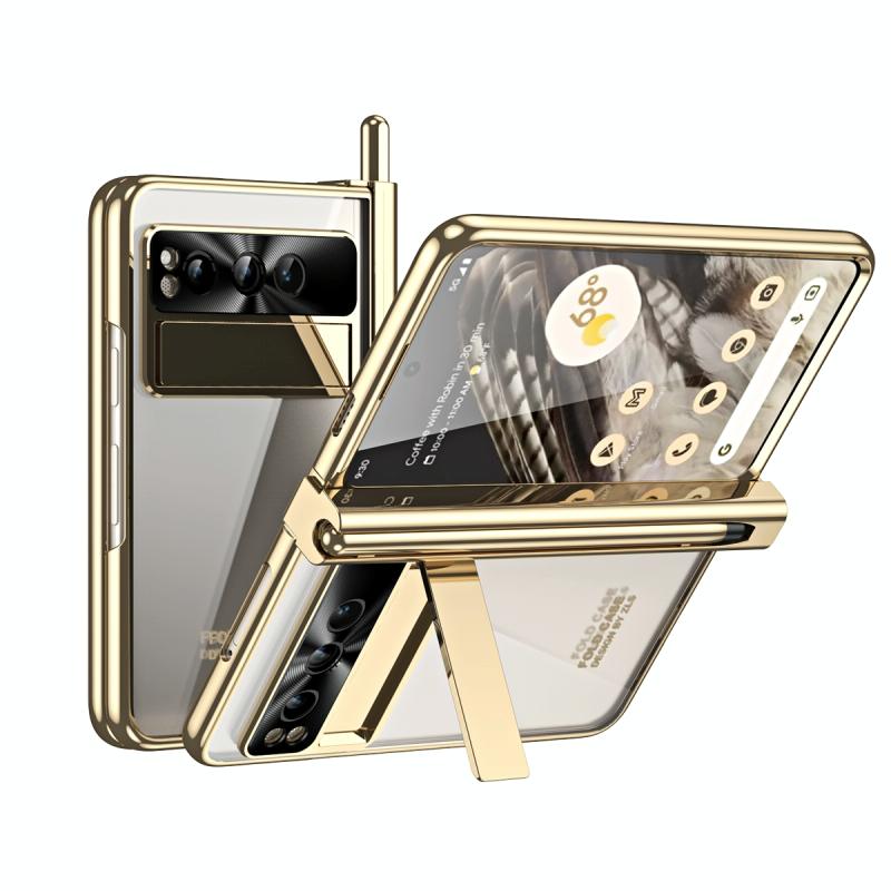 For Google Pixel Fold Integrated Electroplating Folding Phone Case with Pen Slot(Tyrant Gold)