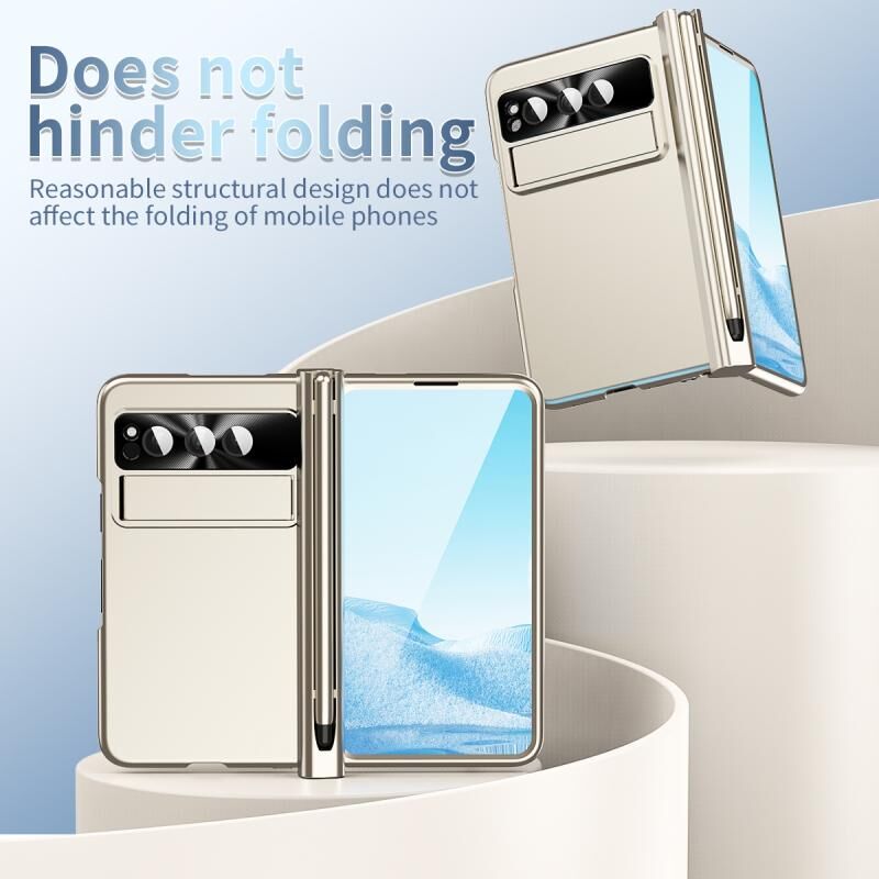 Για το Google Pixel Fold Ενσωματωμένη ηλεκτρολυτική υποδοχή στυλό Διπλή μεντεσέ πτυσσόμενη θήκη τηλεφώνου με γραφίδα (χρυσό)