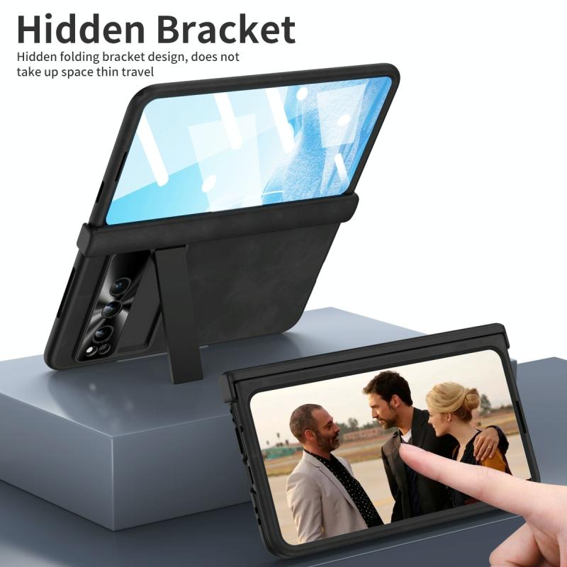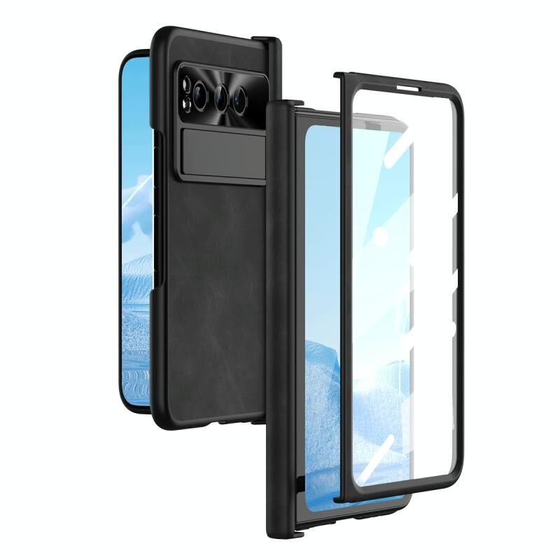 For Google Pixel Fold Integrated Napa Texture All-inclusive Phone Case with Hinge(Black)