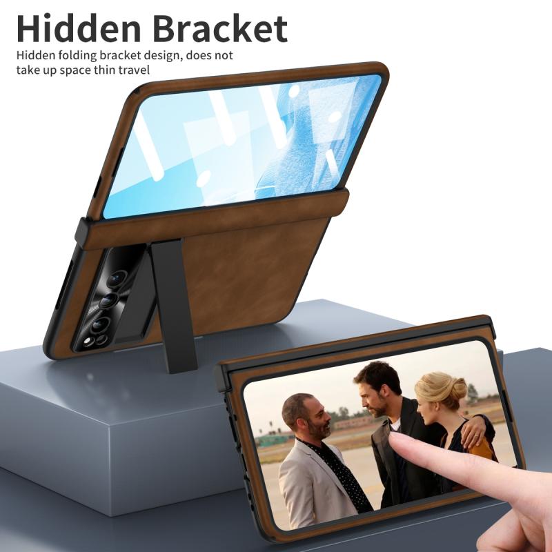 For Google Pixel Fold Integrated Napa Texture All-inclusive Phone Case with Hinge(Brown)