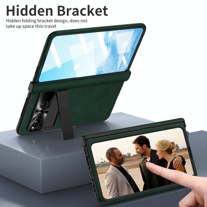 For Google Pixel Fold Integrated Napa Texture All-inclusive Phone Case with Hinge(Green)
