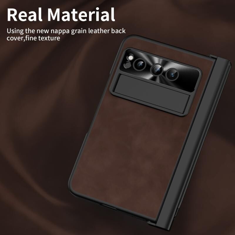 Για το Google Pixel Fold Integrated Napa Texture All-inclusive Phone Case με υποδοχή για στυλό (Καφές)