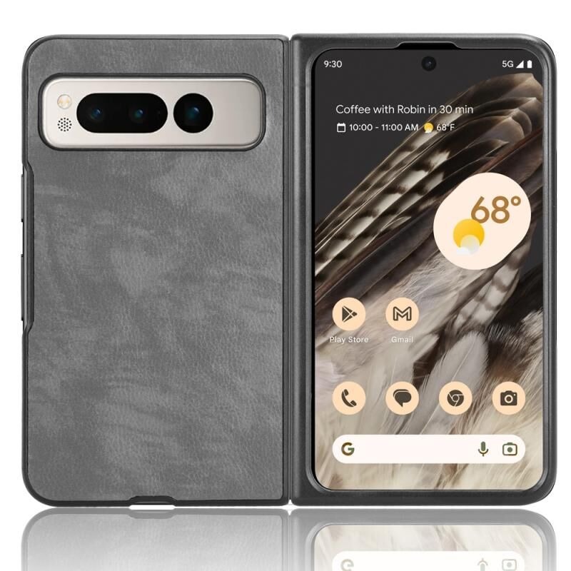 Για Google Pixel Fold Litchi Υφή πίσω κάλυμμα τηλέφωνο υπόθεση (γκρι)