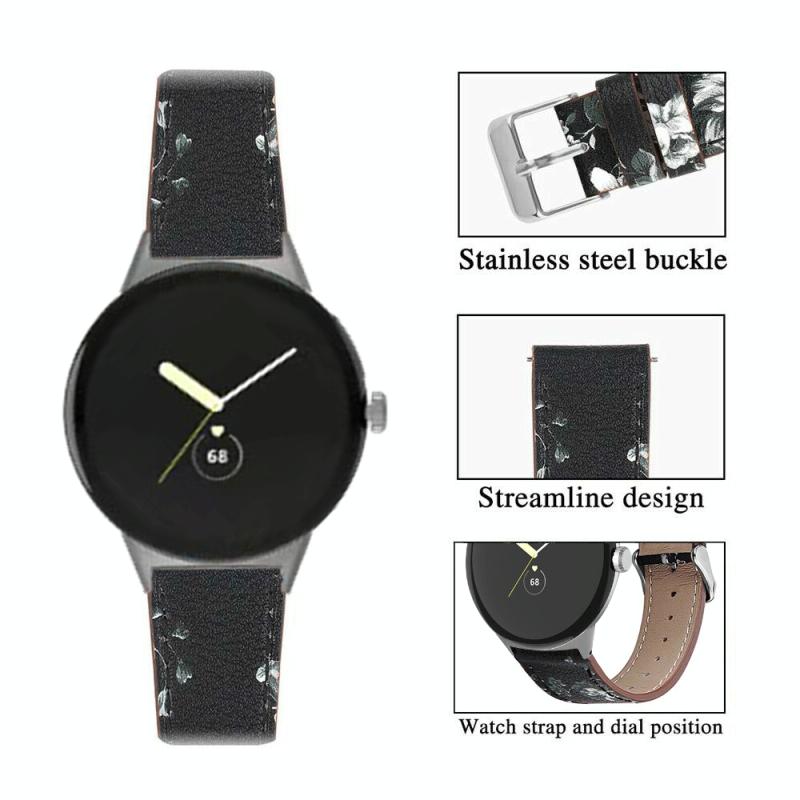 Για Google Pixel Watch 1 / 2 / 3 41mm Λουράκι ρολογιού από γνήσιο δέρμα με στρογγυλή αγκράφα (Γκρι)