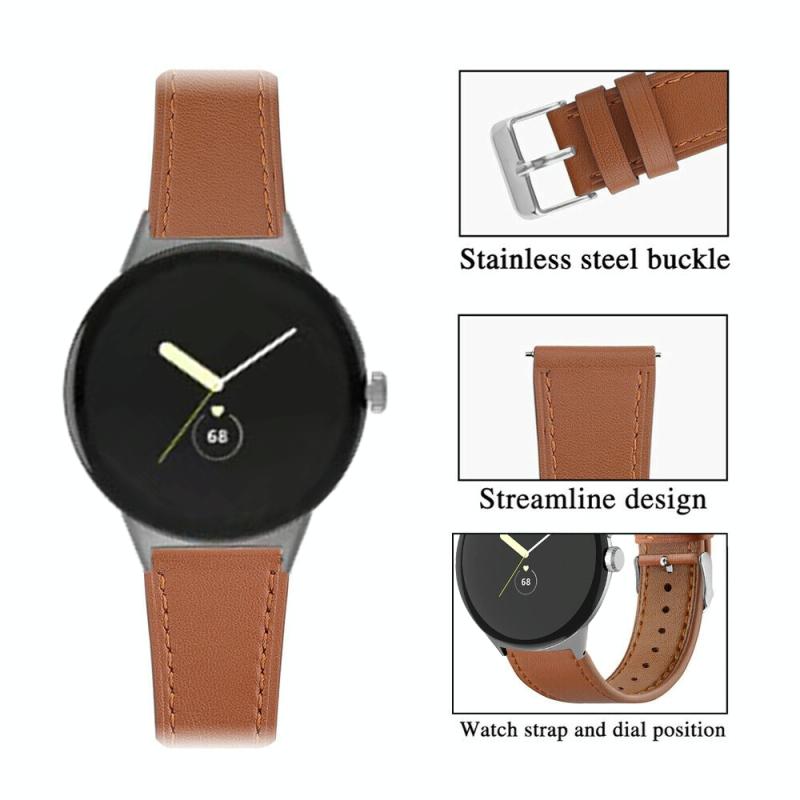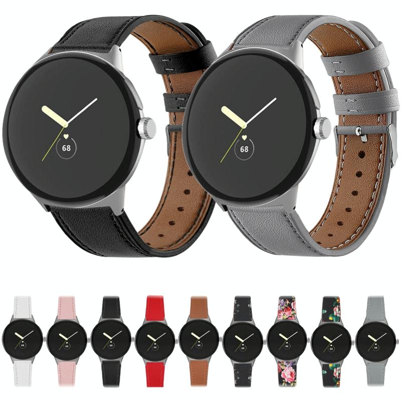 Για Google Pixel Watch 1 / 2 / 3 41mm Λουράκι ρολογιού από γνήσιο δέρμα με στρογγυλή αγκράφα (Γκρι)