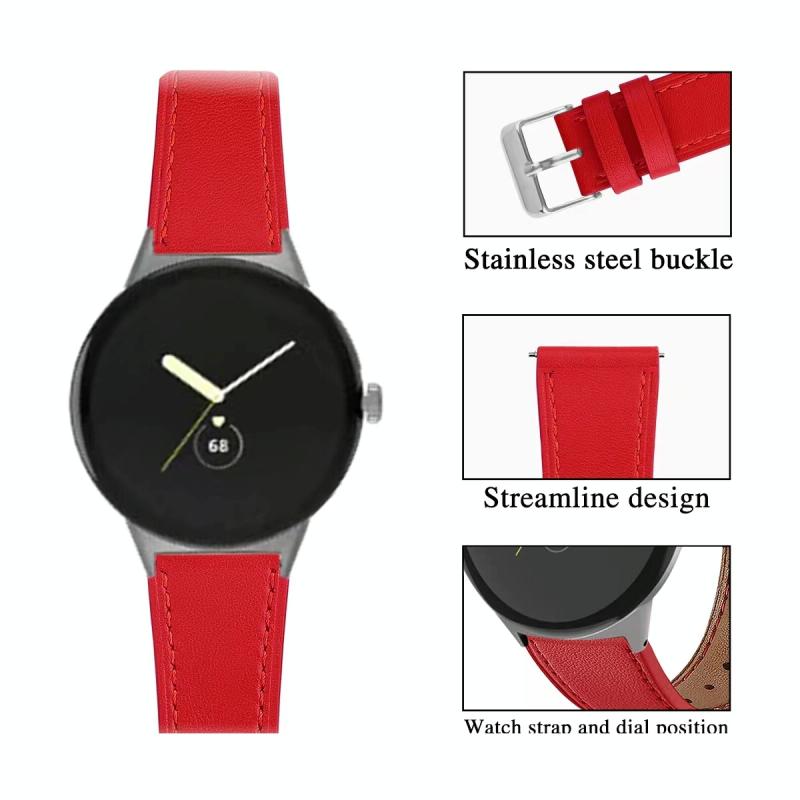 Για Google Pixel Watch 1 / 2 / 3 41mm Λουράκι ρολογιού από γνήσιο δέρμα με στρογγυλή αγκράφα (Γκρι)