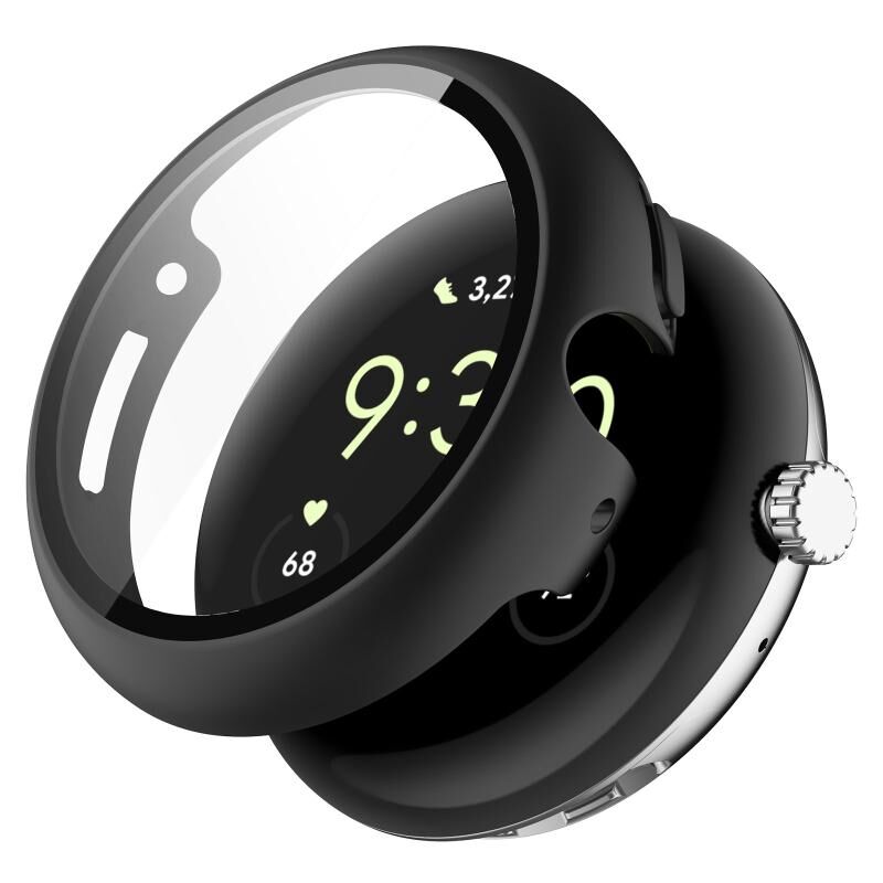 For Google Pixel Watch 2 PC + Tempered Film Integrated Watch Protective Case(Black)