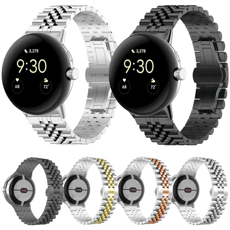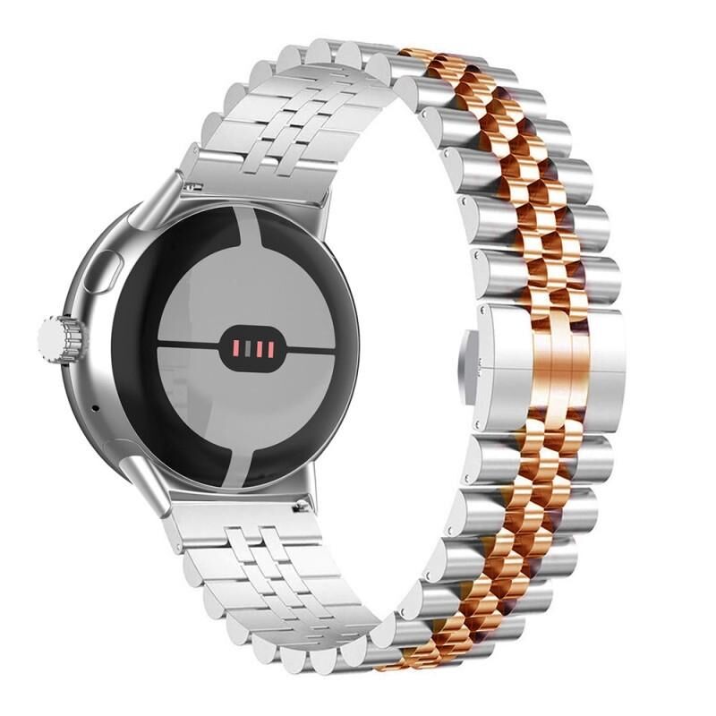 Για το Google Pixel Watch 2 / Pixel Watch Επτά χάντρες από ανοξείδωτο χάλυβα Μεταλλικό λουράκι ρολογιού (Ασημί Ροζ Χρυσό)