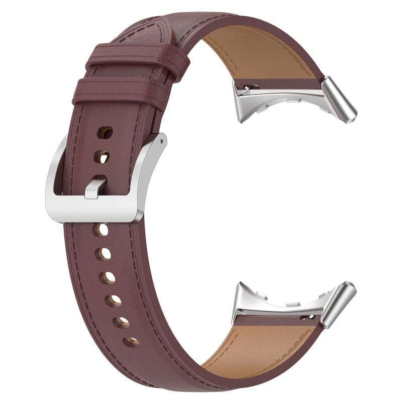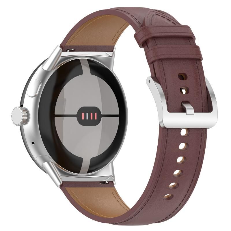 For Google Pixel Watch 2 Top Layer Leather Embossed Sewing Watch Band(Dark Brown)