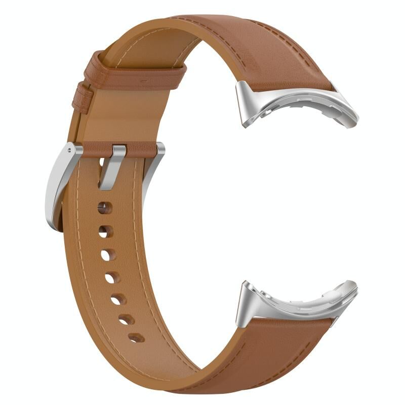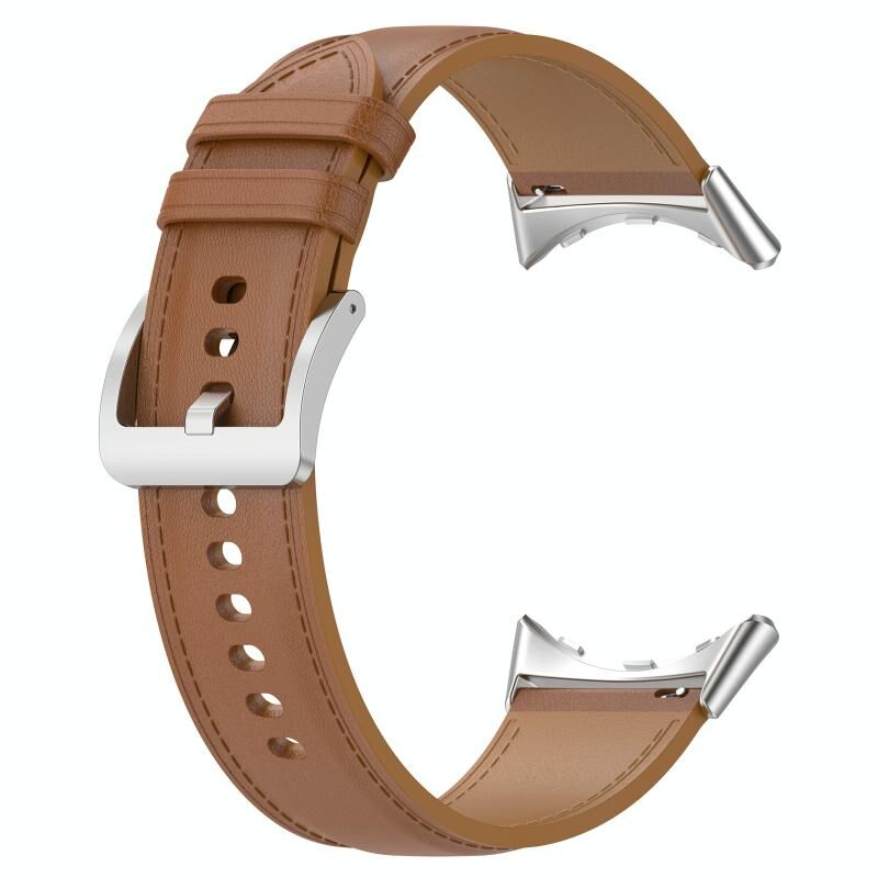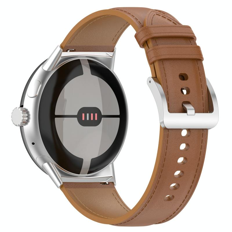 For Google Pixel Watch 2 Top Layer Leather Embossed Sewing Watch Band(Light Brown)
