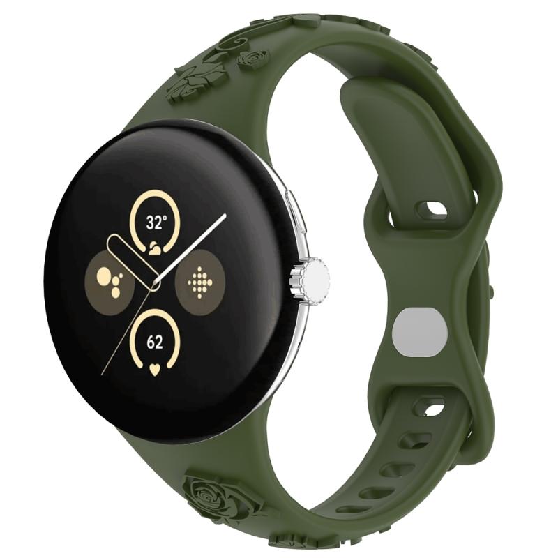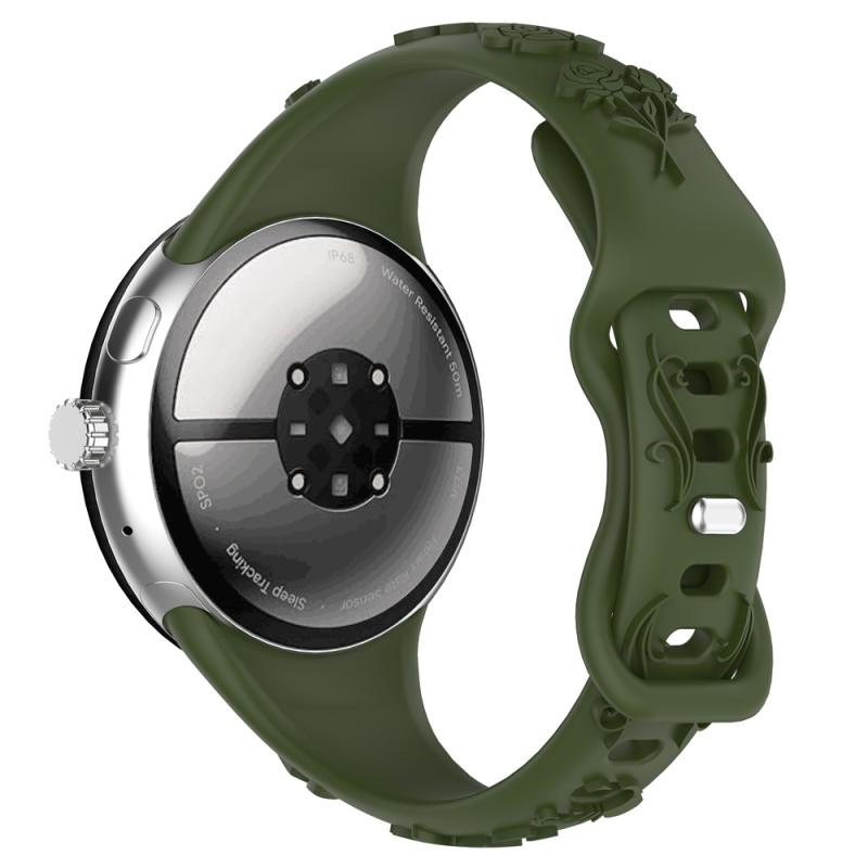For Google Pixel Watch 3 41mm Laser Engraved Texture Silicone Watch Band(Olive Green)