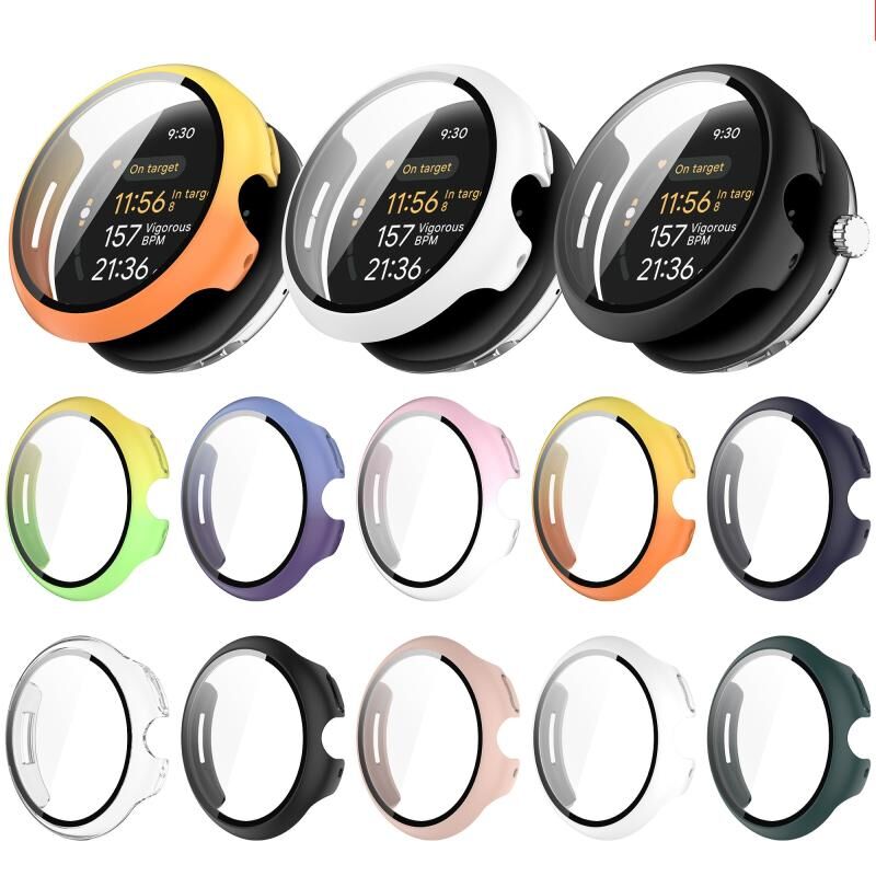 Για το Google Pixel Watch 3 45mm PC + Μετριασμένη μεμβράνη ενσωματωμένη προστατευτική θήκη ρολογιού (ροζ+λευκό)