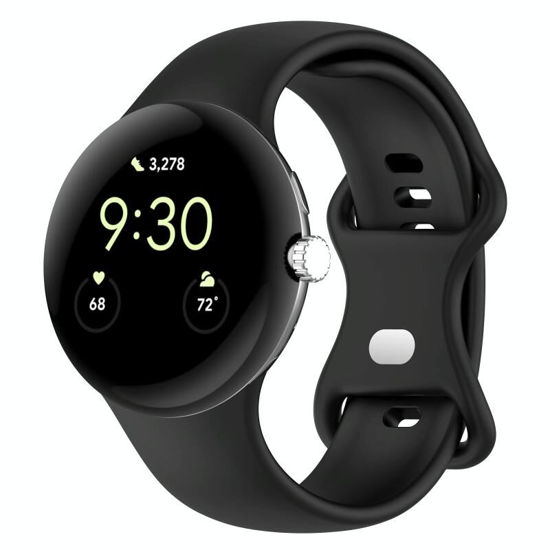 Για Google Pixel Watch 3 45mm, λουρί σιλικόνης με αγκράφα πεταλούδας σε απλό χρώμα, Μέγεθος: S (Μαύρο)