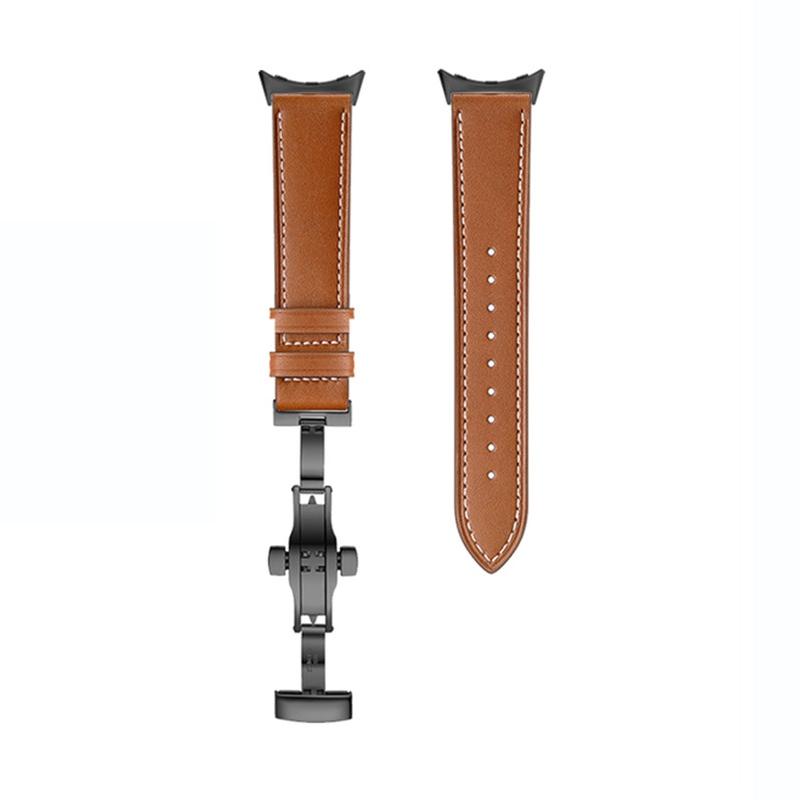 For Google Pixel Watch Butterfly Buckle Genuine Leather Watch Band(Black Brown)