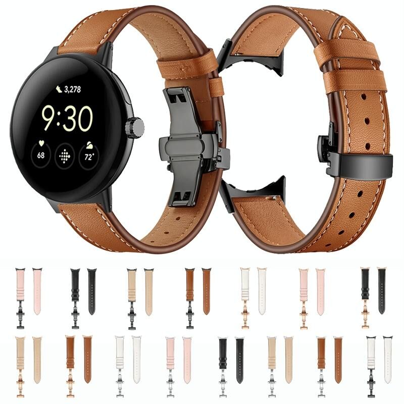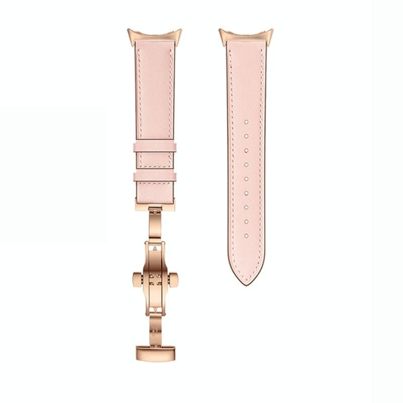 For Google Pixel Watch Butterfly Buckle Genuine Leather Watch Band(Rose Gold Pink)