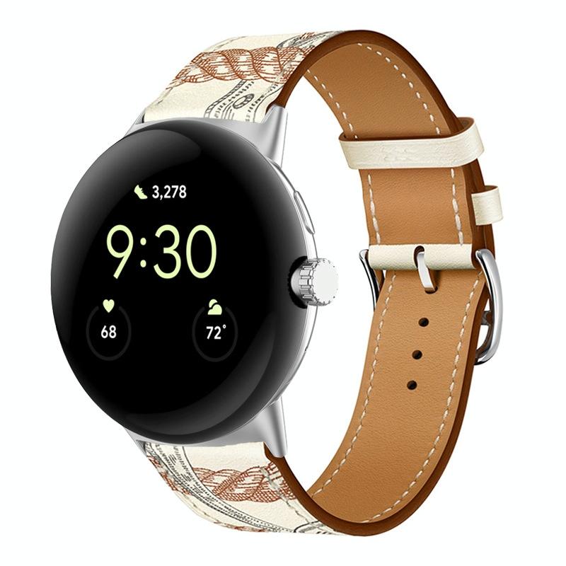 For Google Pixel Watch Genuine Leather Watch Band(White Print)