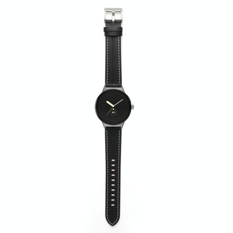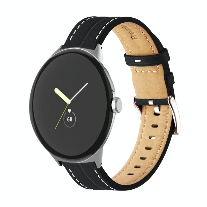 For Google Pixel Watch Grooved Genuine Leather Watch Band(Black)