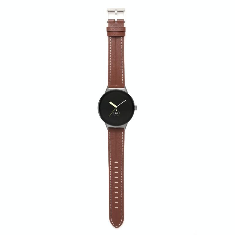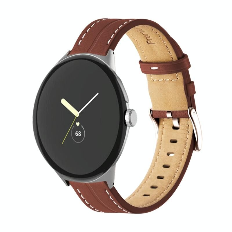 For Google Pixel Watch Grooved Genuine Leather Watch Band(Brown)