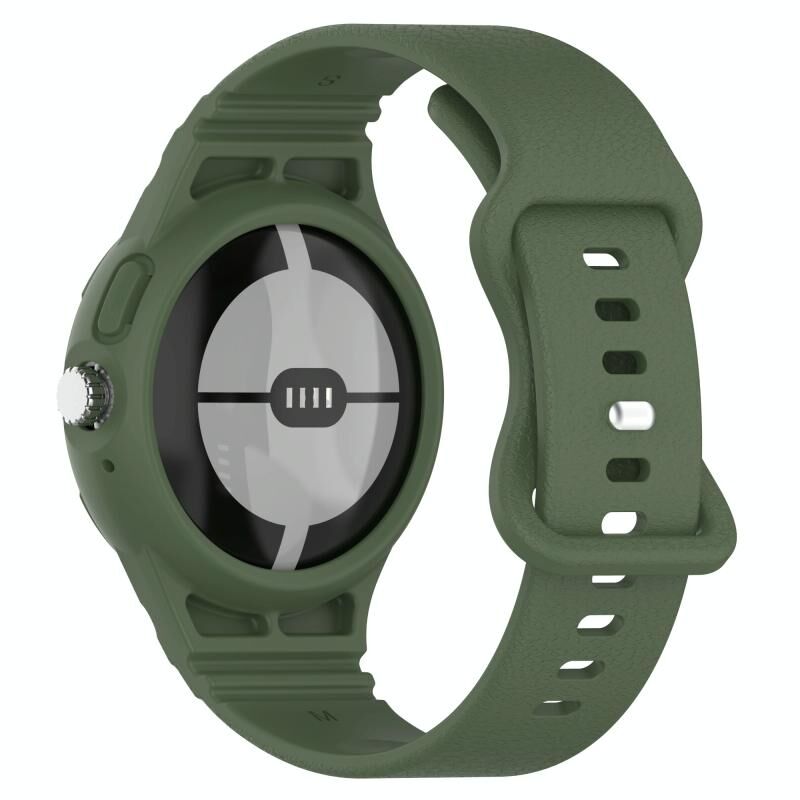 Για το Google Pixel Watch δερμάτινη υφή σιλικόνης ενσωματωμένη ζώνη ρολογιού (σκούρο πράσινο)