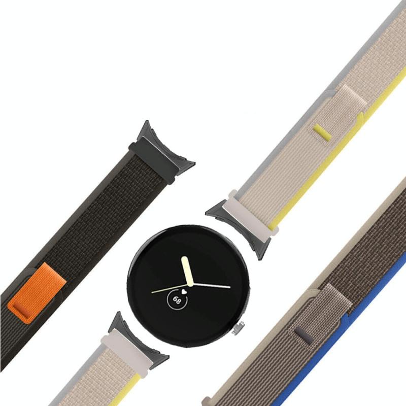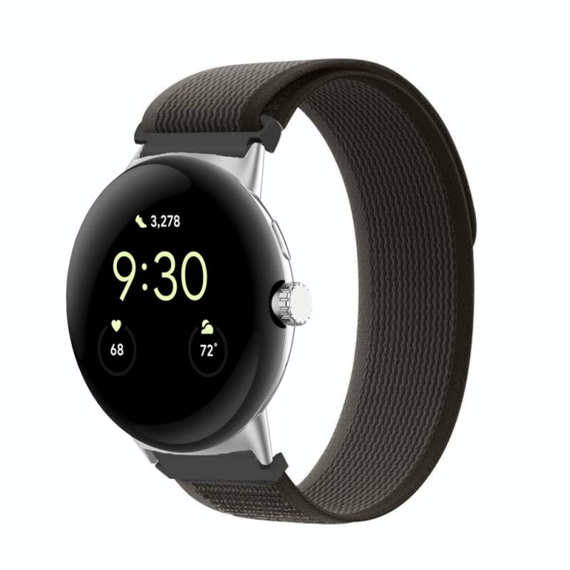 For Google Pixel Watch Loop Silver Connector Nylon Watch Band(Black Grey)
