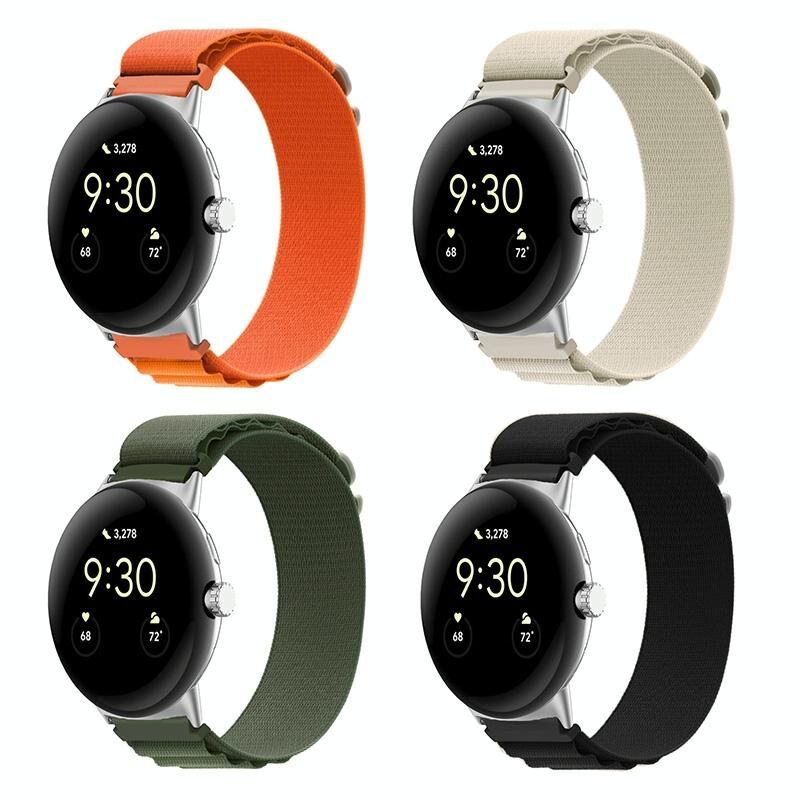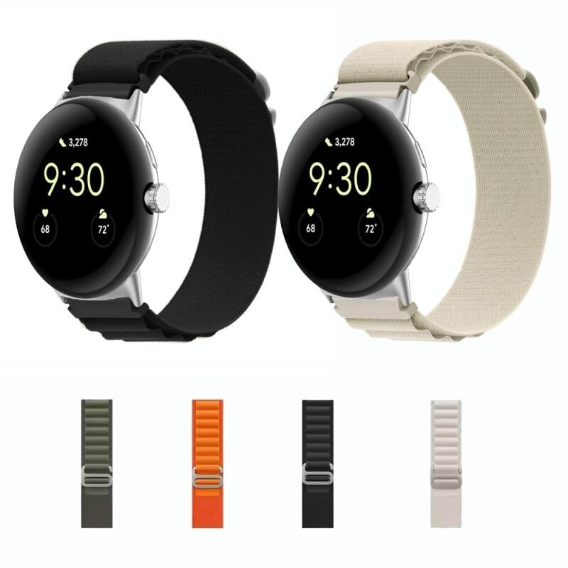 For Google Pixel Watch Nylon Loop Silver Connector Watch Band(Black)