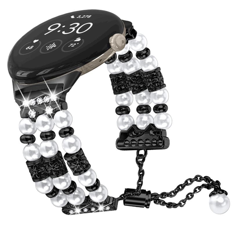 For Google Pixel Watch Pearl Half Bracelet Watch Band(Black)