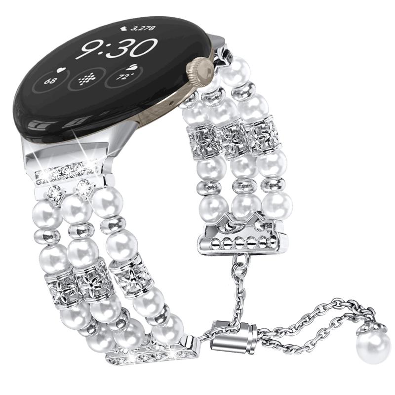For Google Pixel Watch Pearl Half Bracelet Watch Band(Silver)