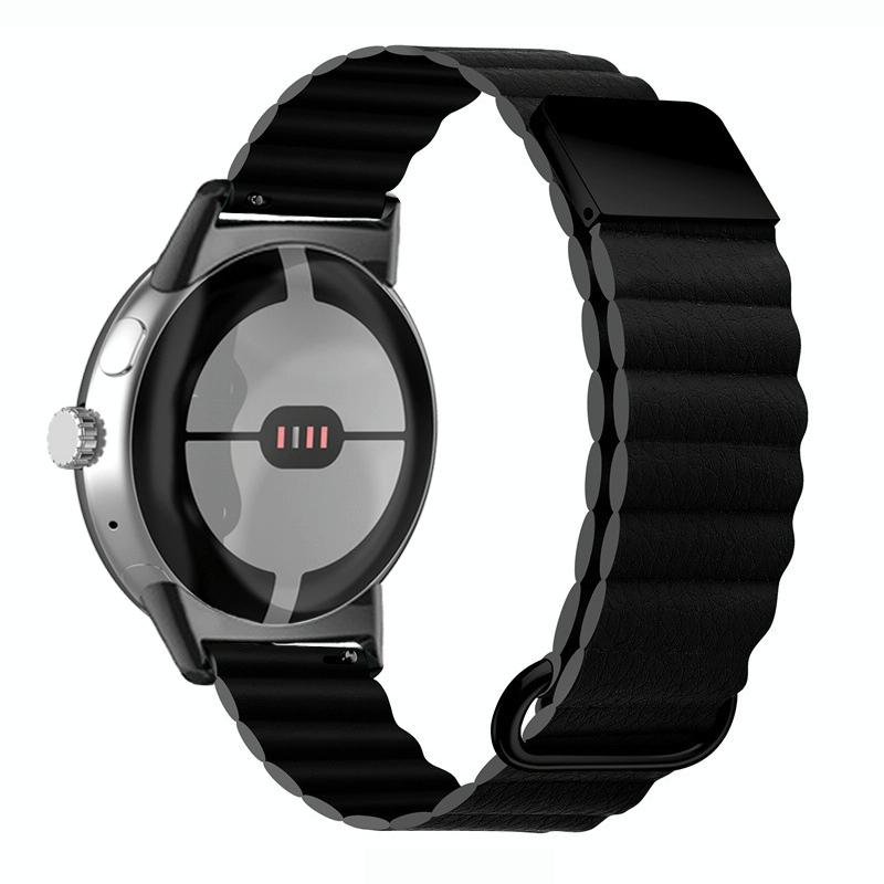 For Google Pixel Watch Reverse Buckle Magnetic Genuine Leather Watch Band(Black)
