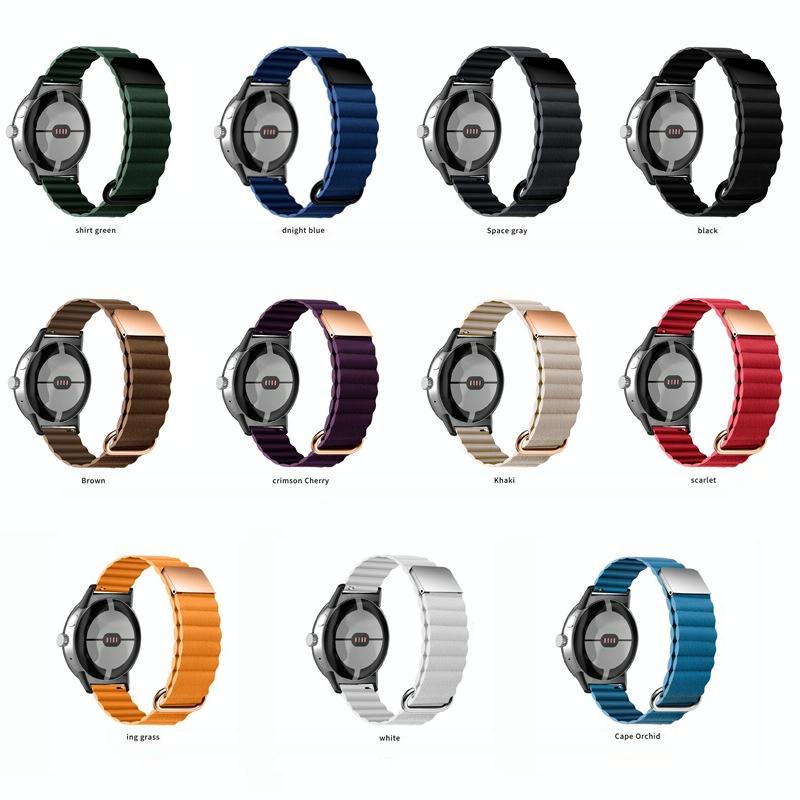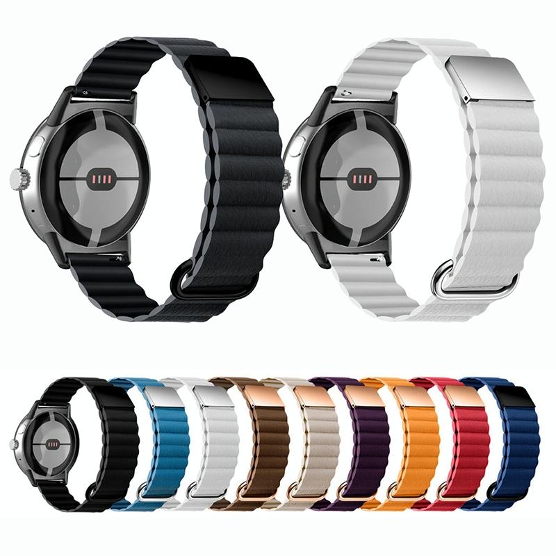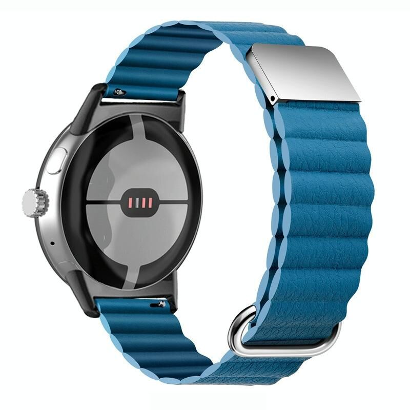 For Google Pixel Watch Reverse Buckle Magnetic Genuine Leather Watch Band(Blue)