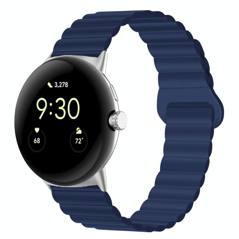 For Google Pixel Watch Reverse Buckle Magnetic Silicone Watch Band(Midnight Blue)