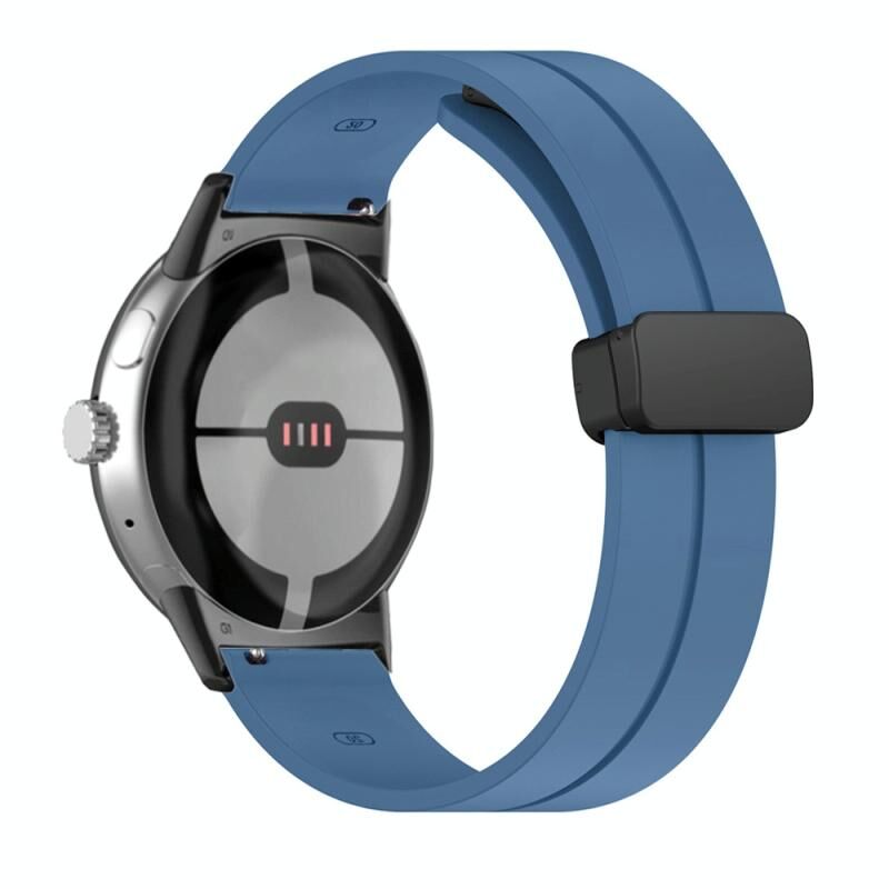 For Google Pixel Watch Solid-color Folding Buckle Silicone Watch Band(Black Blue)