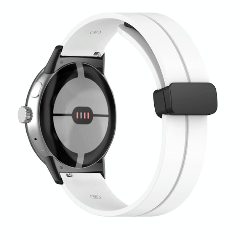 For Google Pixel Watch Solid-color Folding Buckle Silicone Watch Band(Black White)