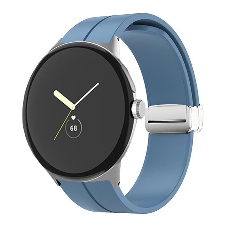 For Google Pixel Watch Solid-color Folding Buckle Silicone Watch Band(Silver Blue)