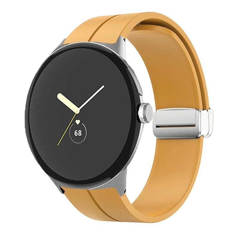 For Google Pixel Watch Solid-color Folding Buckle Silicone Watch Band(Silver Yellow)