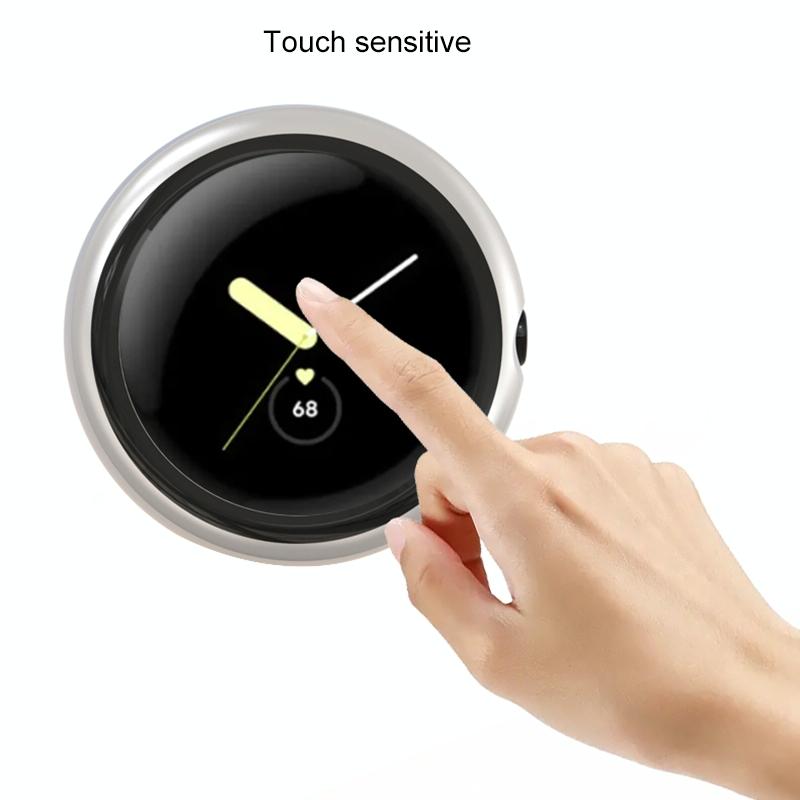For Google Pixel Watch Tempered Glass Film PC Watch Case(Black)
