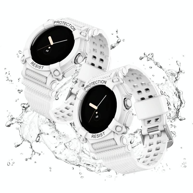 Για το Google Pixel Watch Τρεις-απόδειξη στερεό χρώμα ενσωματωμένη ζώνη ρολογιού (λευκό)
