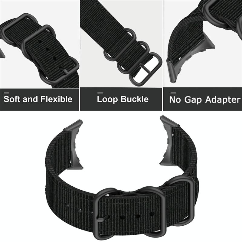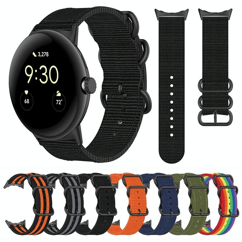 For Google Pixel Watch Three-ring Black Buckle Nylon Watch Band(Army Green)