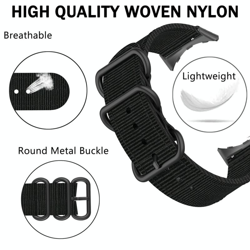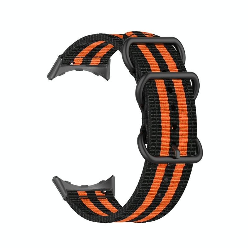 For Google Pixel Watch Three-ring Black Buckle Nylon Watch Band(Black Orange)